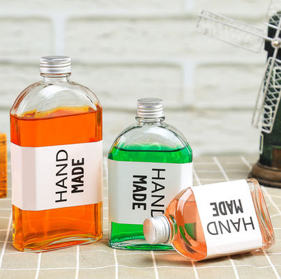 ขวดแก้ว Beverag โปร่งใสแบนสำหรับขวดเก็บแก้วไวน์น้ำผลไม้
