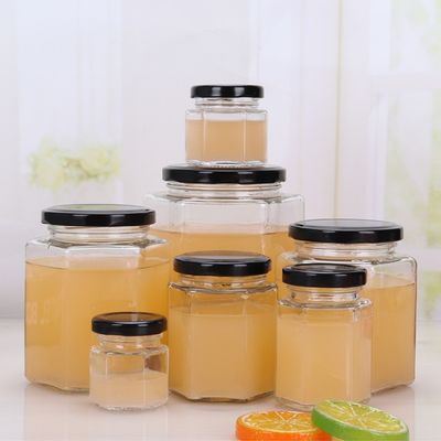 ขายส่งราคาถูก frosco vidrio หกเหลี่ยมขวดซอสแยมรูปหลายเหลี่ยมพร้อมฝาปิดแบบกำหนดเอง