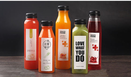 SAFETY CAP SEALS IN FRESHNESS: ขวดน้ำพลาสติกใสพร้อมฝาปิดแบบบิดเกลียวช่วยป้องกันการรั่วซึมที่น่ารำคาญและล็อคความสดเพื่อให้แน่ใจว่าน้ำผลไม้ของคุณพร้อมขายเสมอ