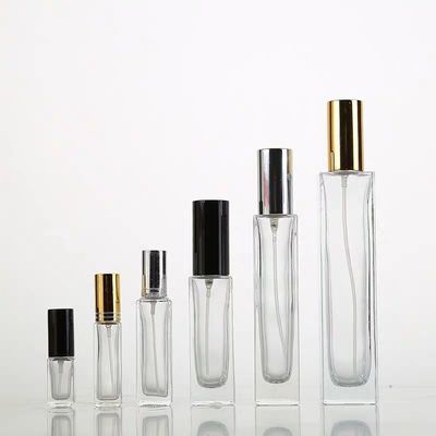 ขวดน้ำหอมสเปรย์แก้วทรงสูงทรงเหลี่ยมสูง ภาชนะบรรจุเครื่องสำอางแก้ว
