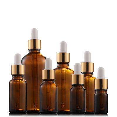 ภาชนะเครื่องสำอางแก้วสีเหลืองอำพันสำเร็จการศึกษา 0.7oz 30ml ขวดหยดพร้อมปิเปต 5