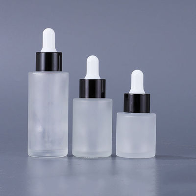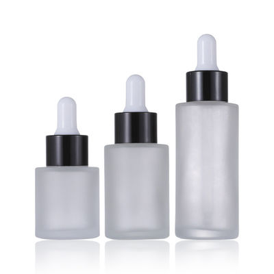 ภาชนะบรรจุเครื่องสำอางแก้วขวดหยดเซรั่มเครื่องสำอางไหล่แบน