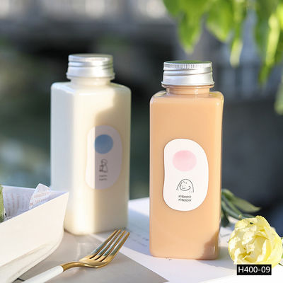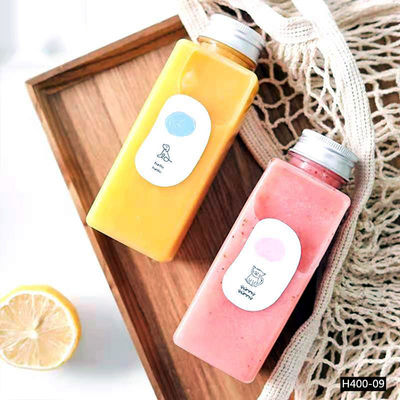 น้ำผลไม้ 400ml สร้างสรรค์ขวดเครื่องดื่มพลาสติกทรงสี่เหลี่ยมที่ใช้แล้วทิ้ง