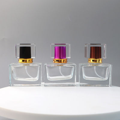 ขวดน้ำหอมสเปรย์แก้วหรูหราสวยงามเปล่า 30ml คอนเทนเนอร์เครื่องสำอางแก้วทรงสี่เหลี่ยม