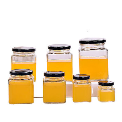 ที่กำหนดเองที่ว่างเปล่าเก็บอาหารสแควร์น้ำผึ้งขวดขวดแก้วเก็บขวดสำหรับน้ำผึ้ง