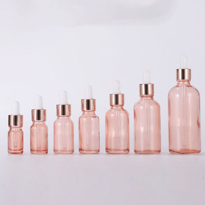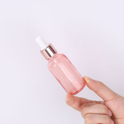 ภาชนะบรรจุเครื่องสำอางแก้วขวดหยดน้ำมันหอมระเหยลูกกลิ้งสีชมพู