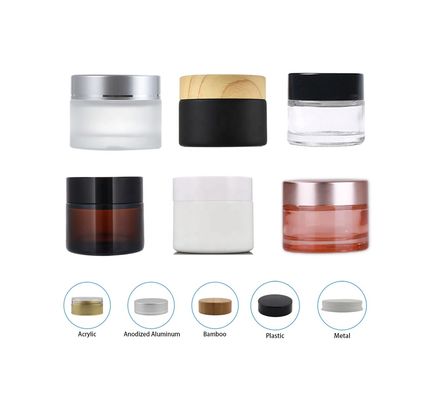 คอนเทนเนอร์เครื่องสำอางฝาแก้วไม้ไผ่สีทองอโนไดซ์สีเหลืองอำพัน 15g 0