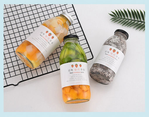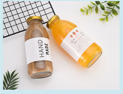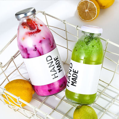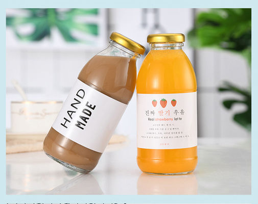 300ml 350ml 500ml ขวดเครื่องดื่มทรงกลมที่มีฉลากแก้วโยเกิร์ตขวดนมปั่นขวดนม